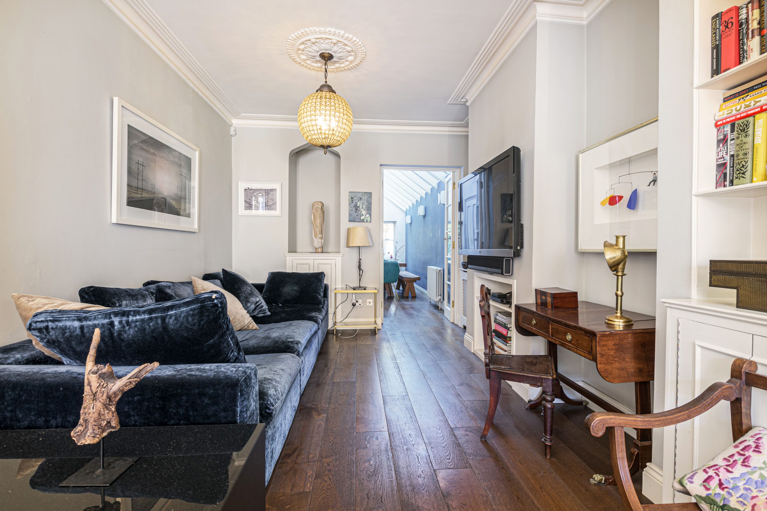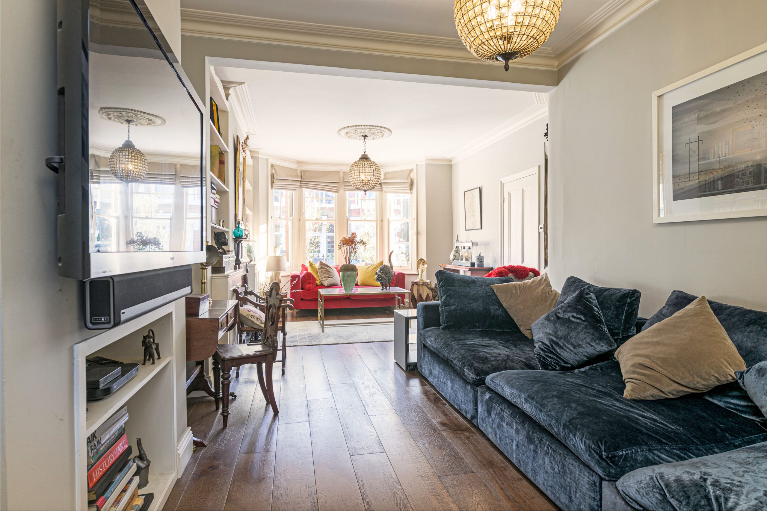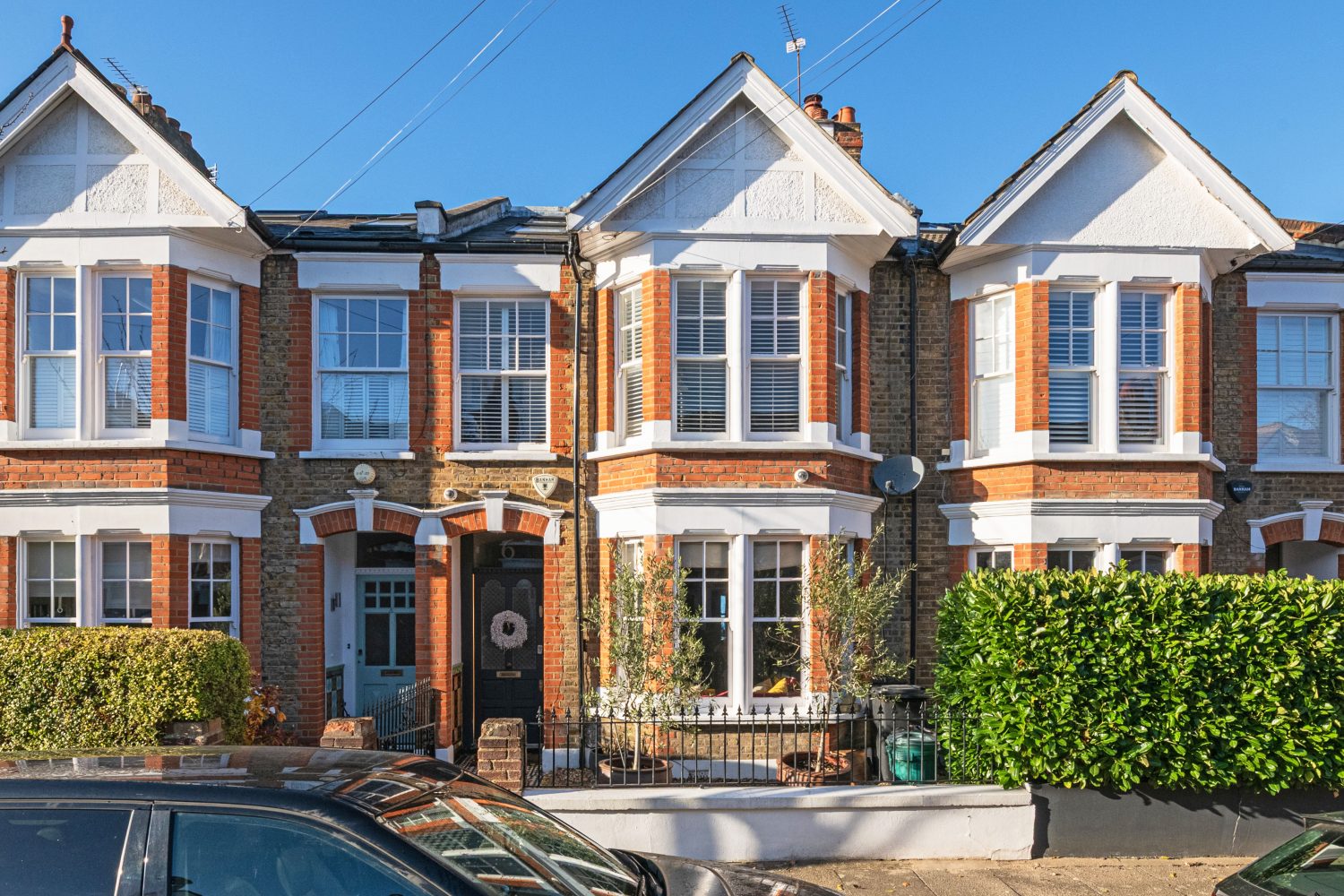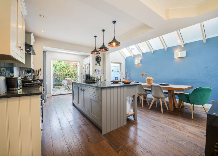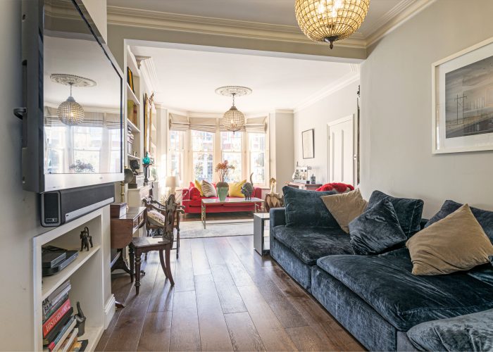 The property is arranged over three floors and features an extended kitchen/dining room with a John Lewis of Hungerford kitchen, a range cooker and an island with sink and additional storage. The floors are wooden and there is space for a large dining table; the extension houses the side by side fridge/freezer. The double reception room (26’6 x 11’7) features a bay window, cornicing with ceiling roses, wooden floors, fireplace and an attractive alcove. The hallway provides access to the cellar and the cloakroom. The garden is west facing and terraced. The first floor features three bedrooms with a complimenting bathroom and separate WC. The top floor is both front and rear loft conversions dedicated to a spacious master bedroom with en suite.
