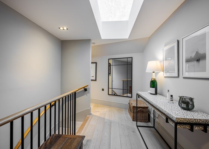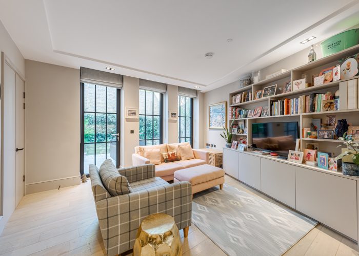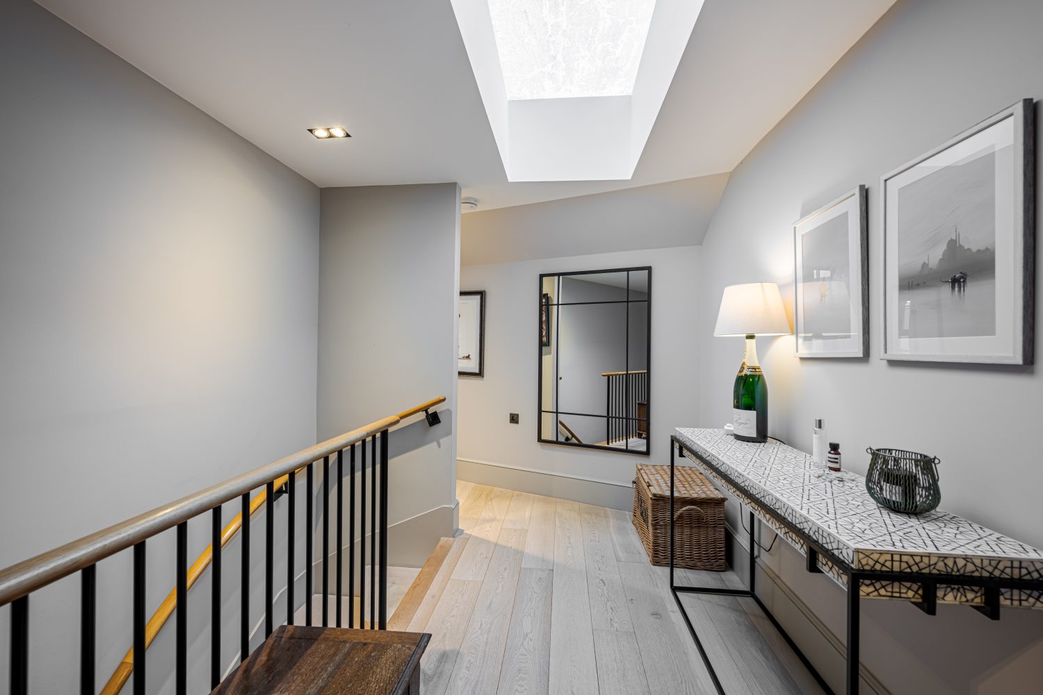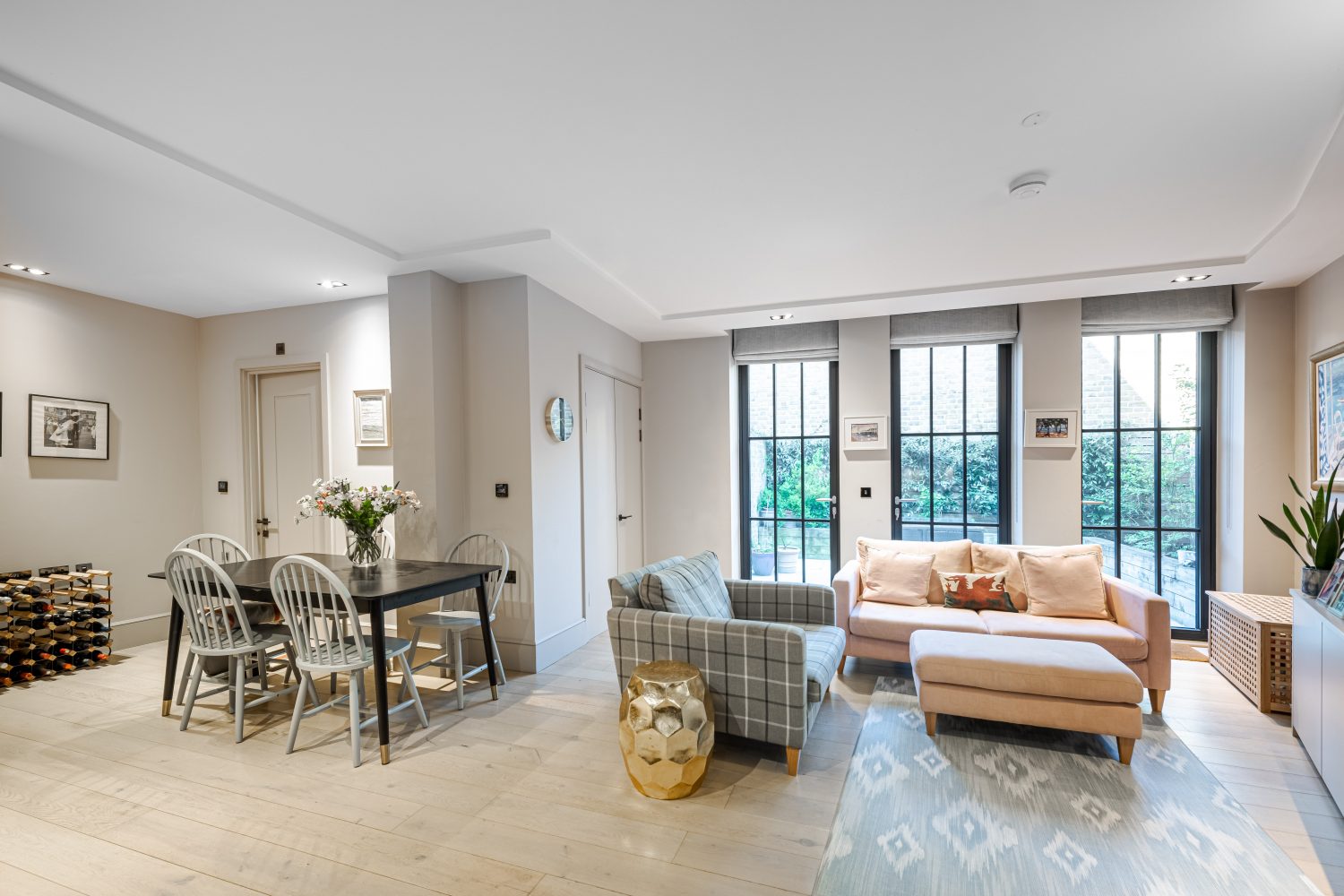 In excellent condition throughout, the flat is accessed via the ground floor into a spacious entrance hallway and there is the master bedroom with ample storage and an en suite shower room. On the lower ground floor there is a large open-plan kitchen reception room, with plenty of space for entertaining, which leads to a good-sized private west facing garden. There is also a second double bedroom served by a separate bathroom.