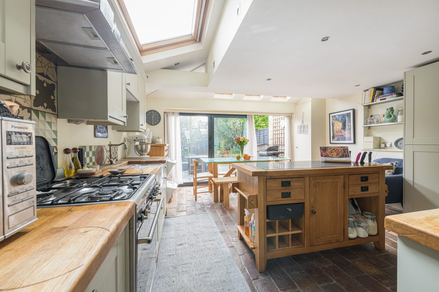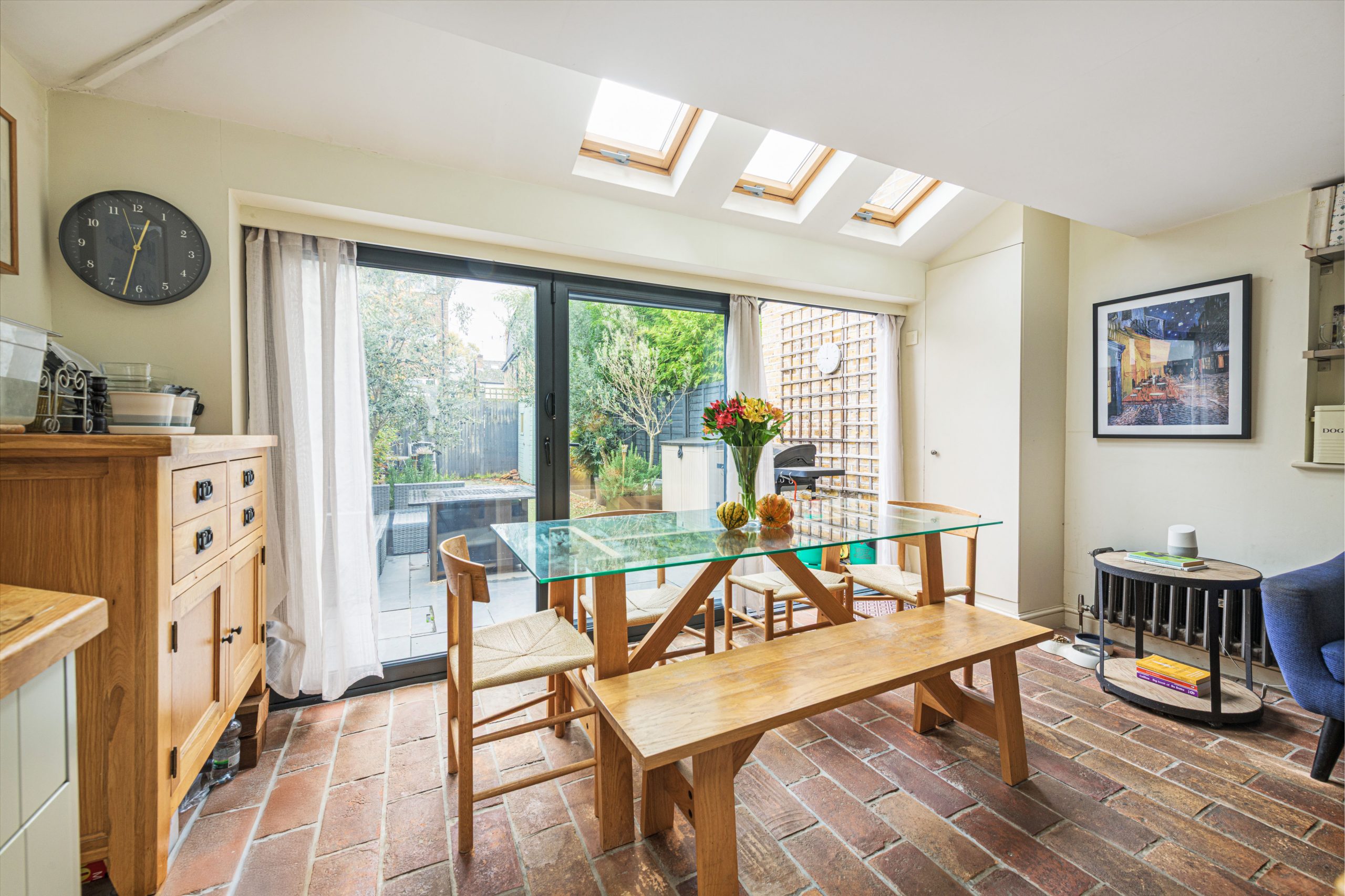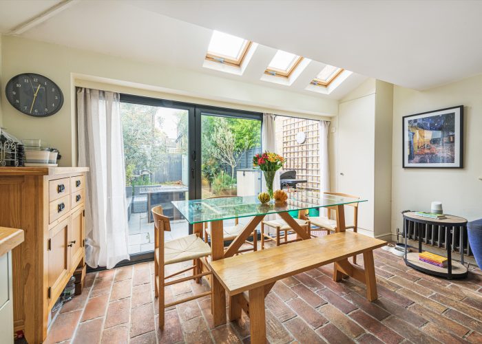 The property provides a wonderful blend of modern living and privacy with plenty of light and bright space, perfect for a growing family. A stunning well fitted, fully extended 14’ family kitchen breakfast room opens on to the private, south facing 36′ garden through bi-fold doors. Located mid terrace on this delightful no-through road, the accommodation comprises two intercommunicating reception rooms and a guest cloakroom, There are four bedrooms upstairs, and two luxury bathrooms.