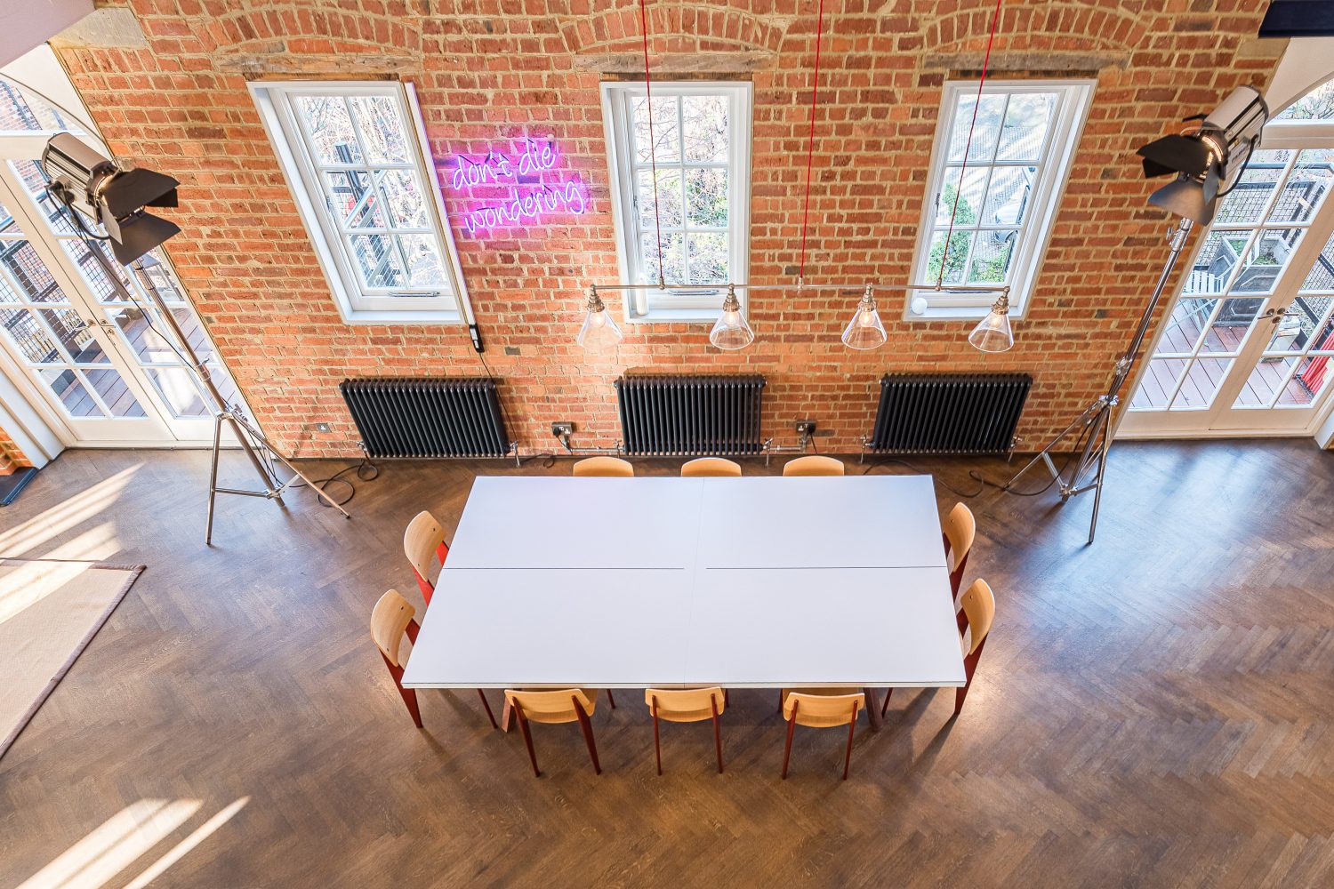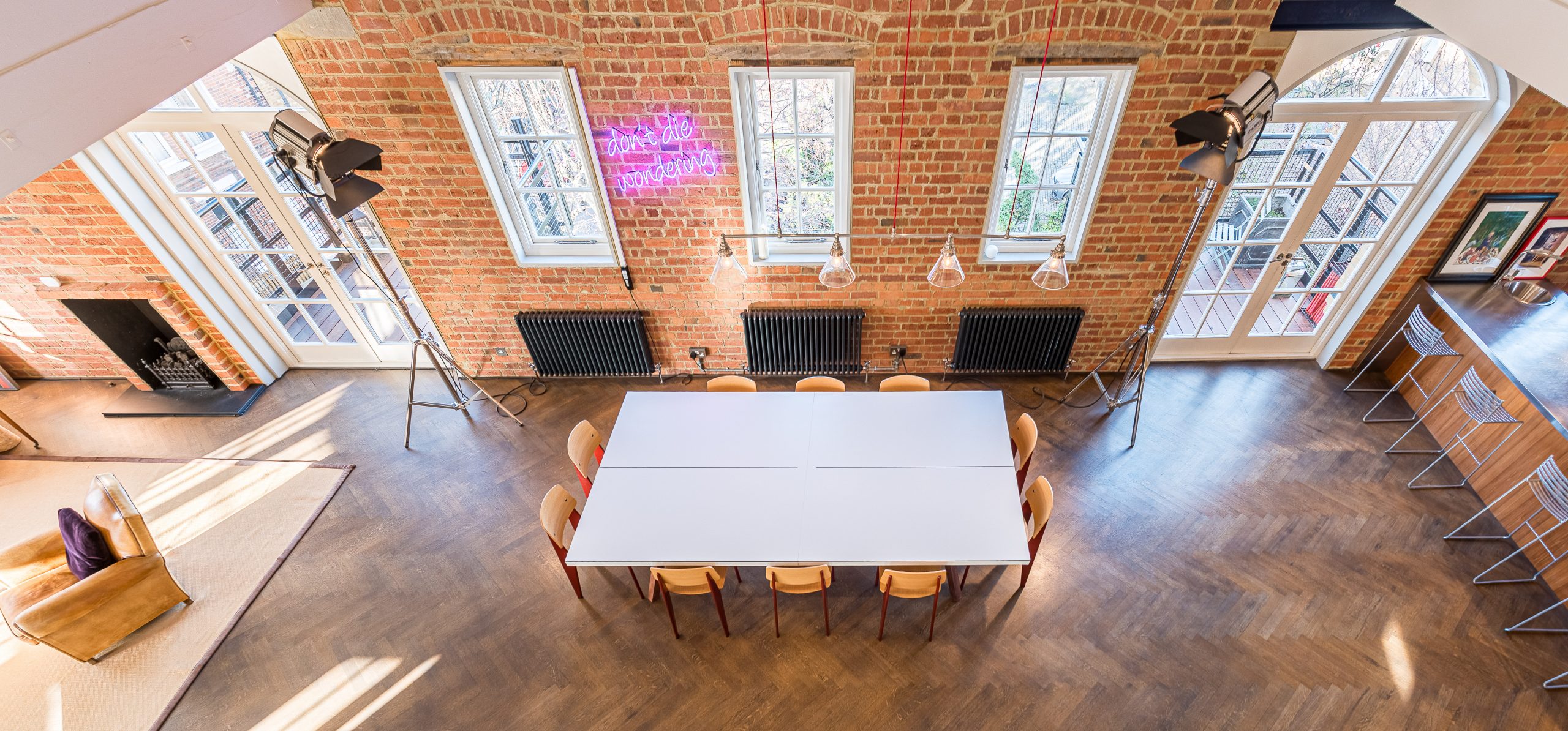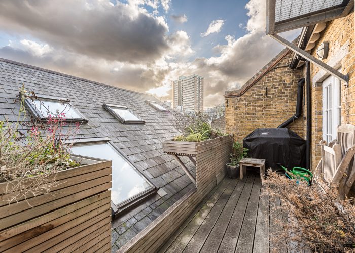 Naturally bright throughout, on the second floor there is a huge open plan kitchen/reception/ dining room with bespoke wooden floors, exposed brick and double doors leading out onto two private balconies. There is also a conservatory spanning the width of the reception which is currently being used as a study. The modern integrated kitchen has industrial style units, built in appliances, a pantry and breakfast island. There is also a utility room and guest WC.