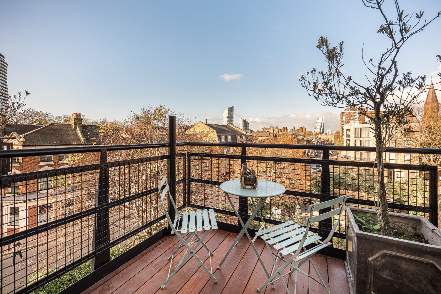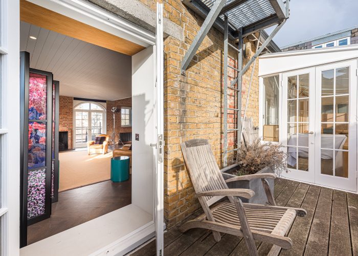 A spectacular split-level three bedroom flat of circa 2666 sq ft with unrivalled entertaining space in Old Library Apartments, SW11.