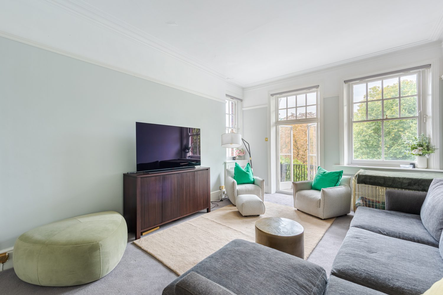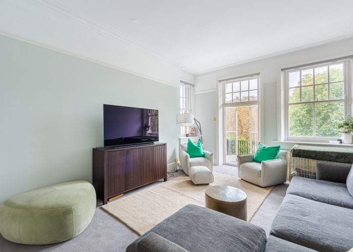 A large three double bedroom flat on the second floor of Park Mansions with wonderful views over Battersea Park.