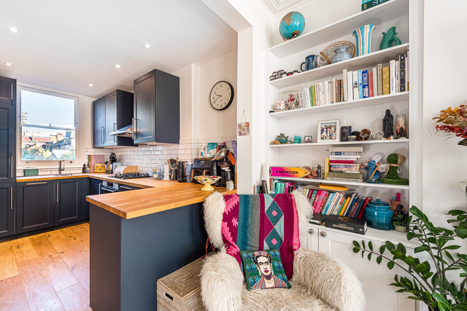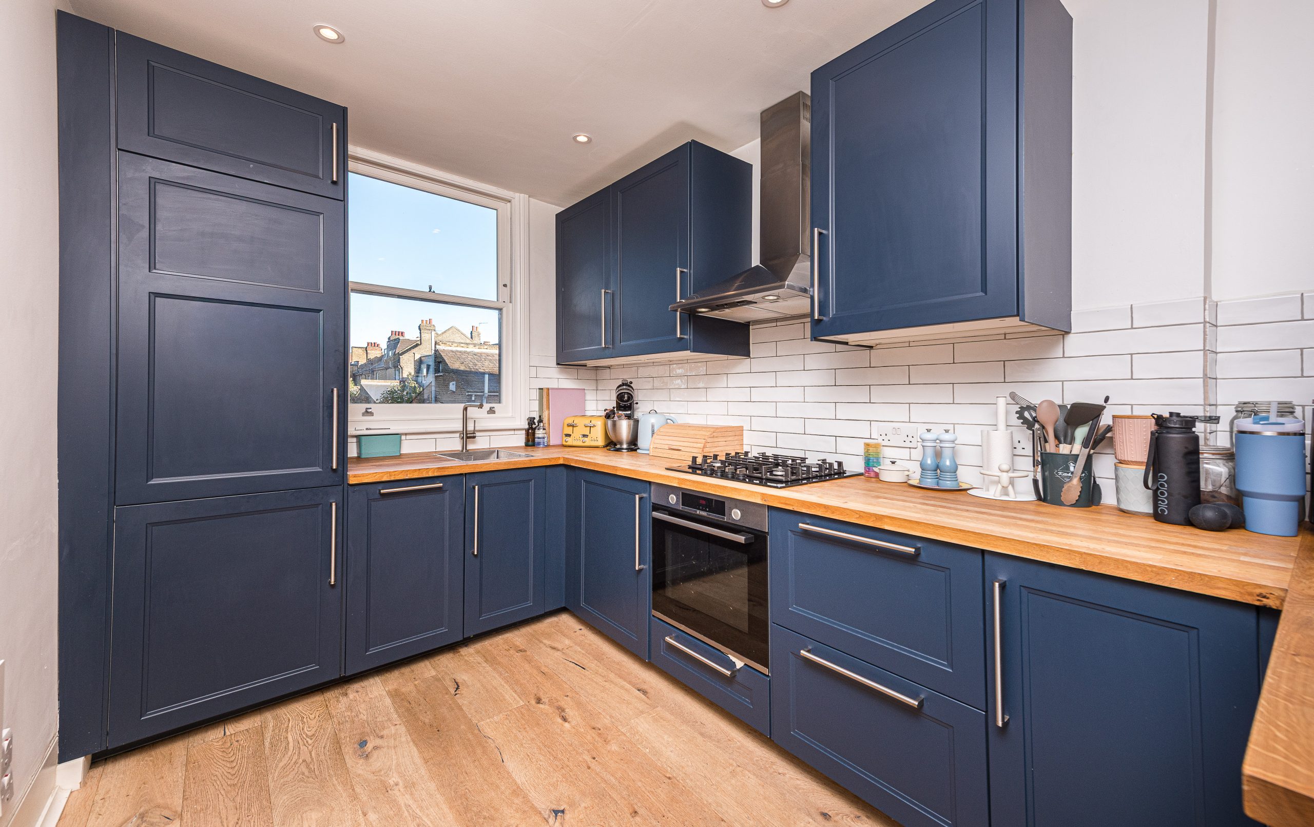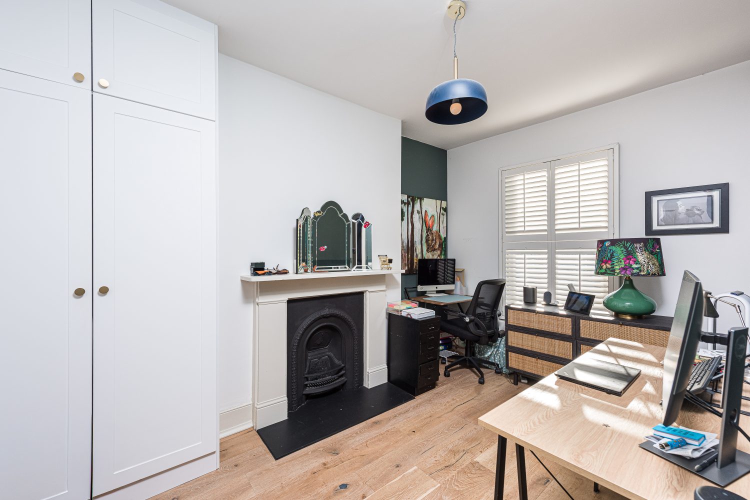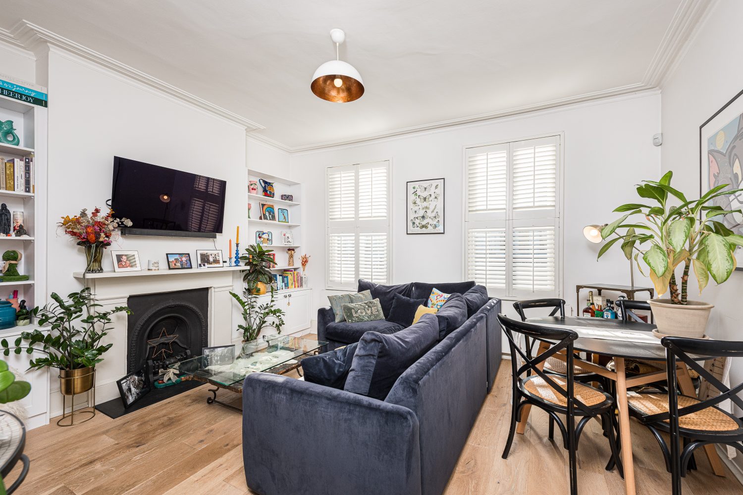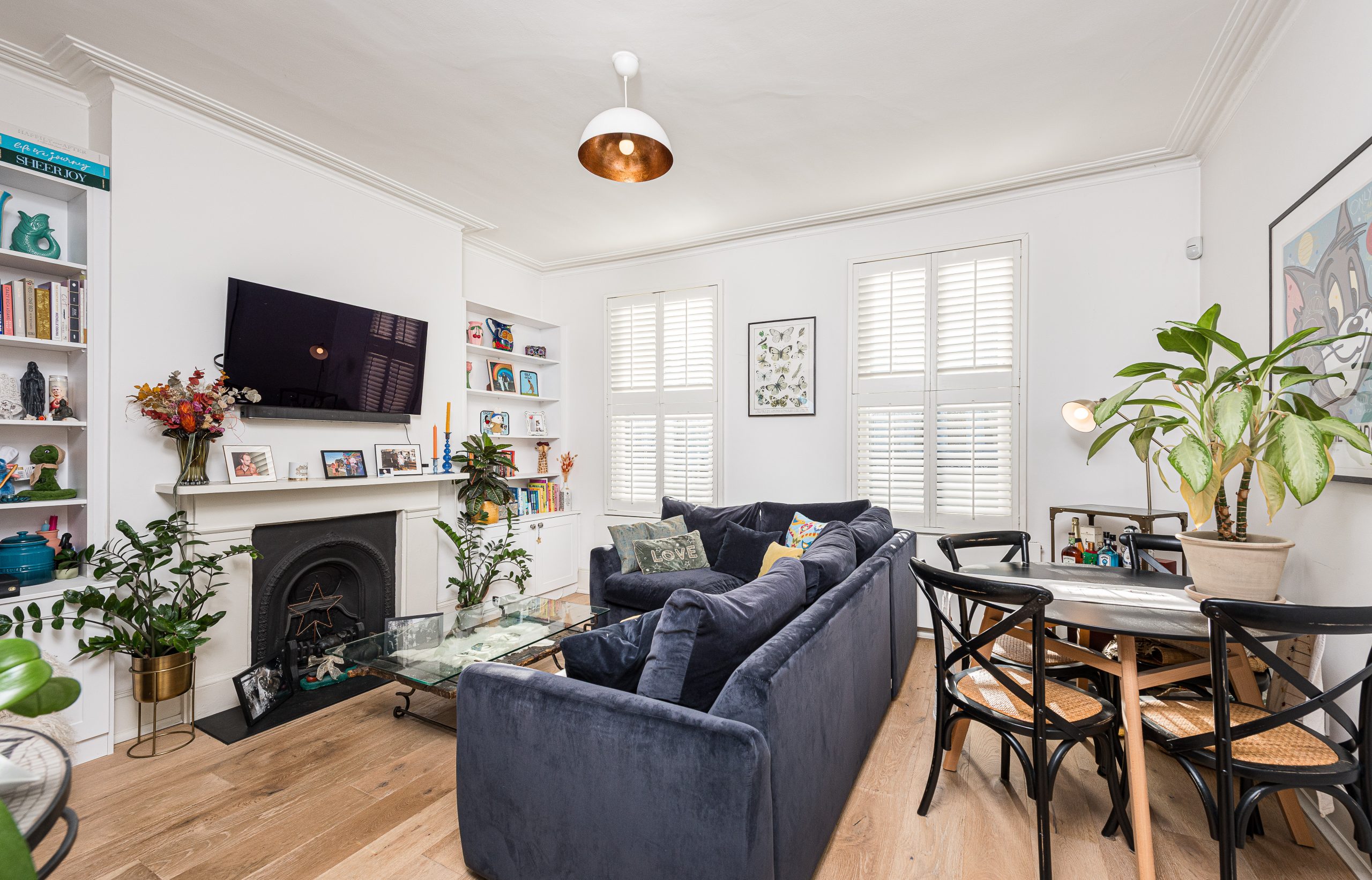 In excellent condition throughout, the flat is entered on the ground floor via a private front door. The first floor has lovely high ceilings and there is an open-plan kitchen/reception room with space for a dining table. On the second floor there is the master bedroom and a second double bedroom, both with built-in storage, served by an immaculate bathroom. Subject to the necessary planning consent there is also potential to extend into the loft.