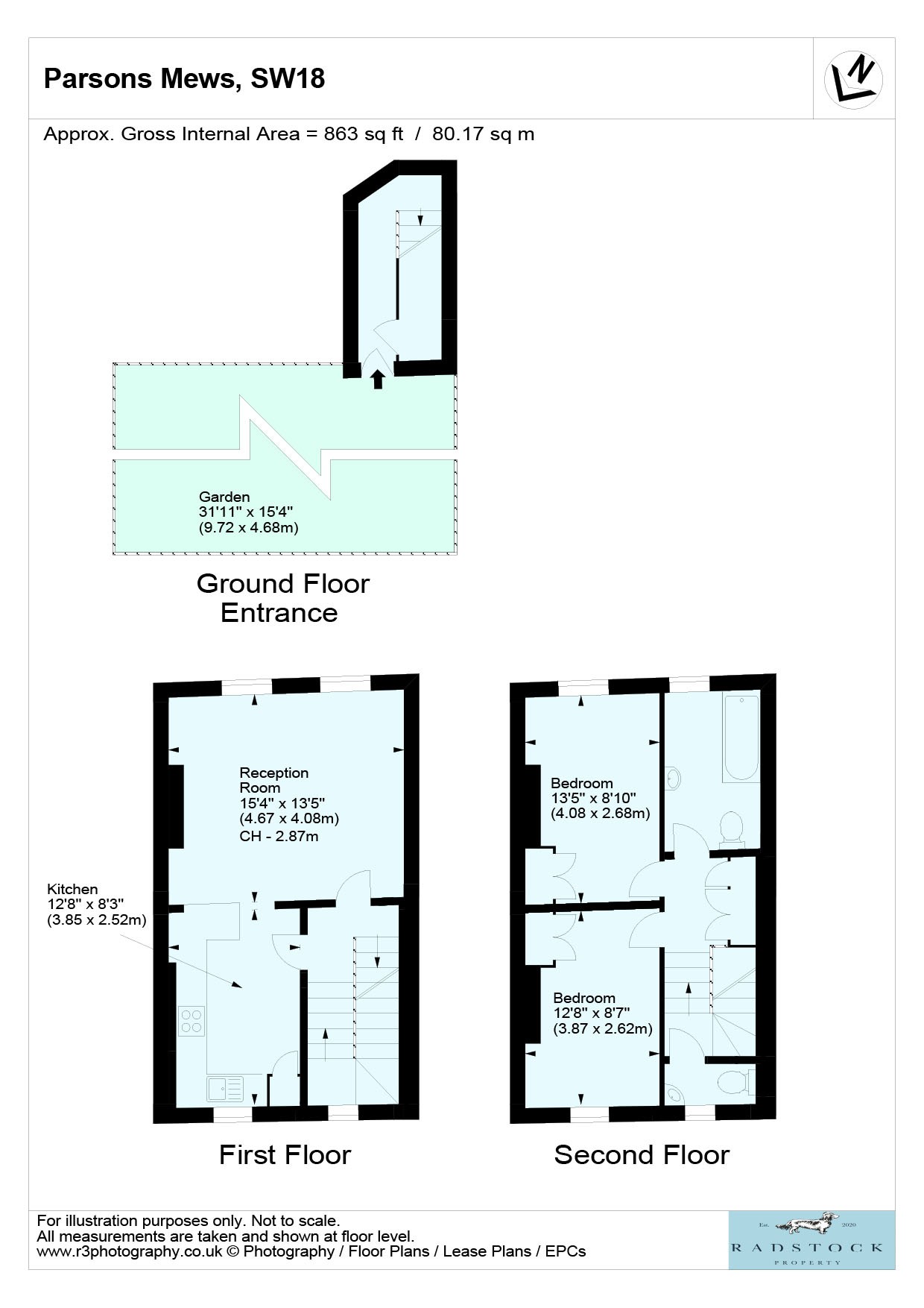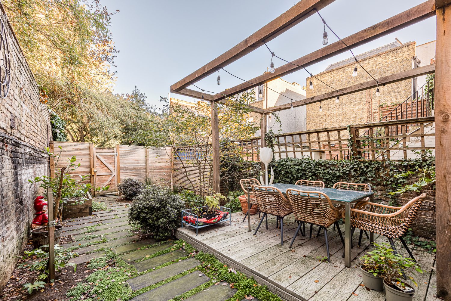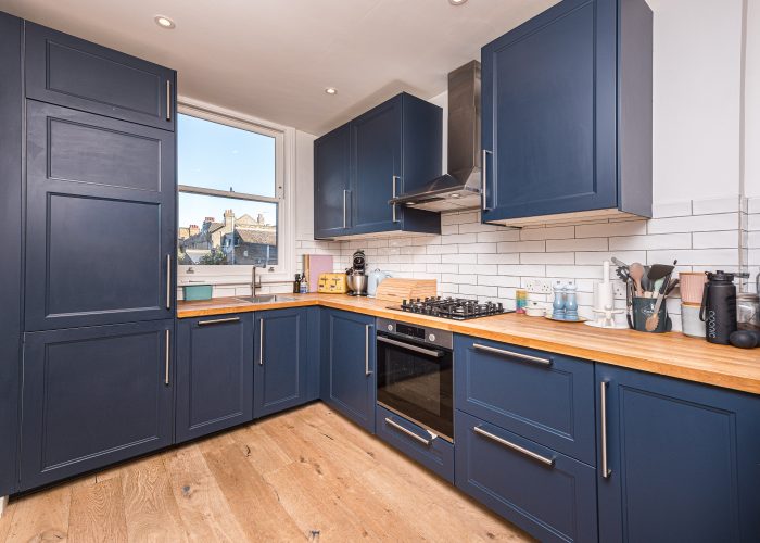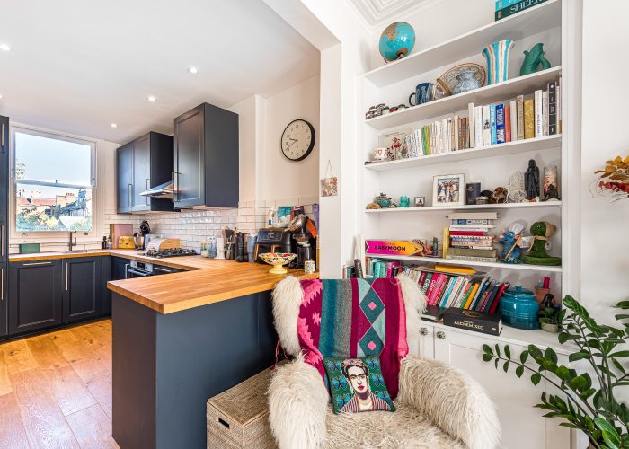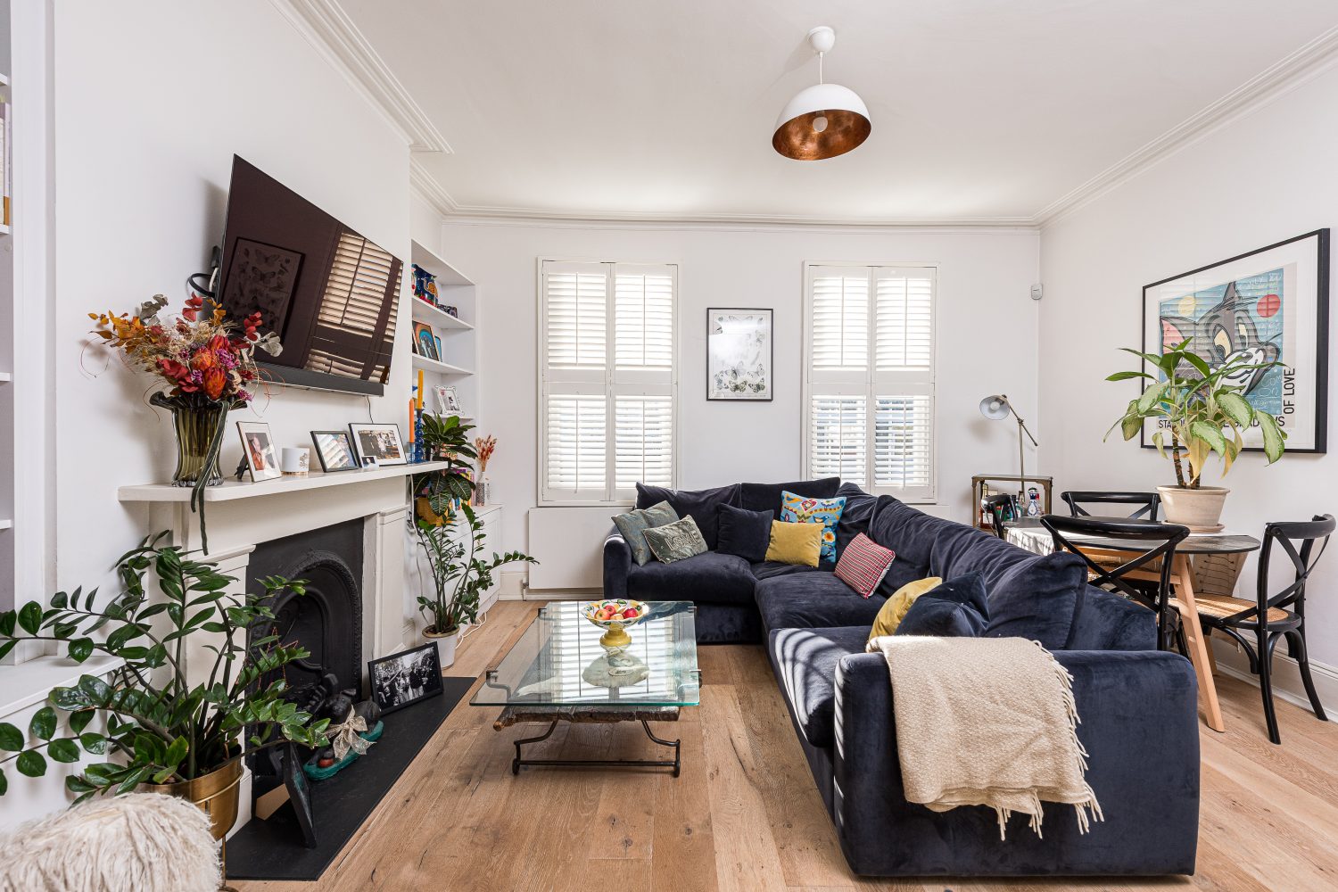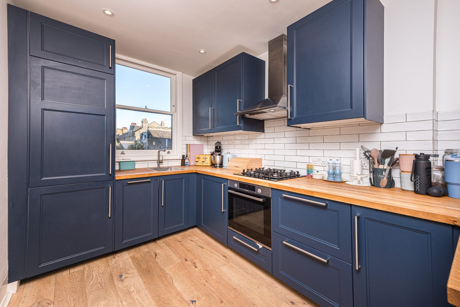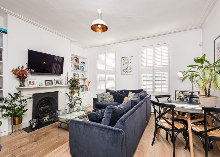 In excellent condition throughout, the flat is entered on the ground floor via a private front door. The first floor has lovely high ceilings and there is an open-plan kitchen/reception room with space for a dining table. On the second floor there is the master bedroom and a second double bedroom, both with built-in storage, served by an immaculate bathroom. Subject to the necessary planning consent there is also potential to extend into the loft.