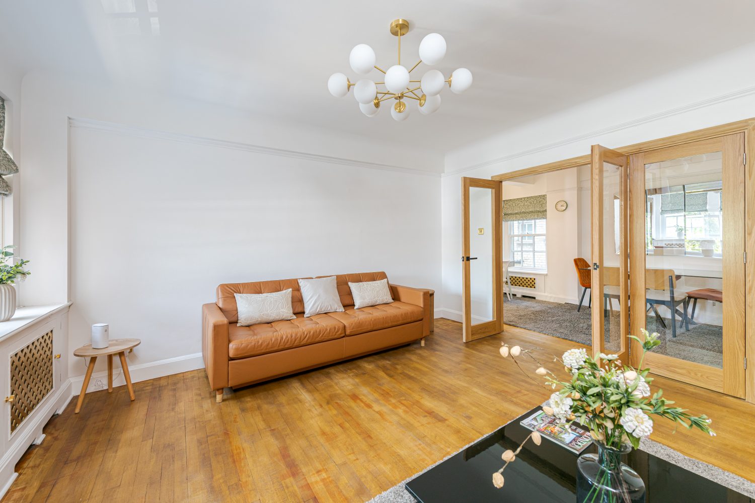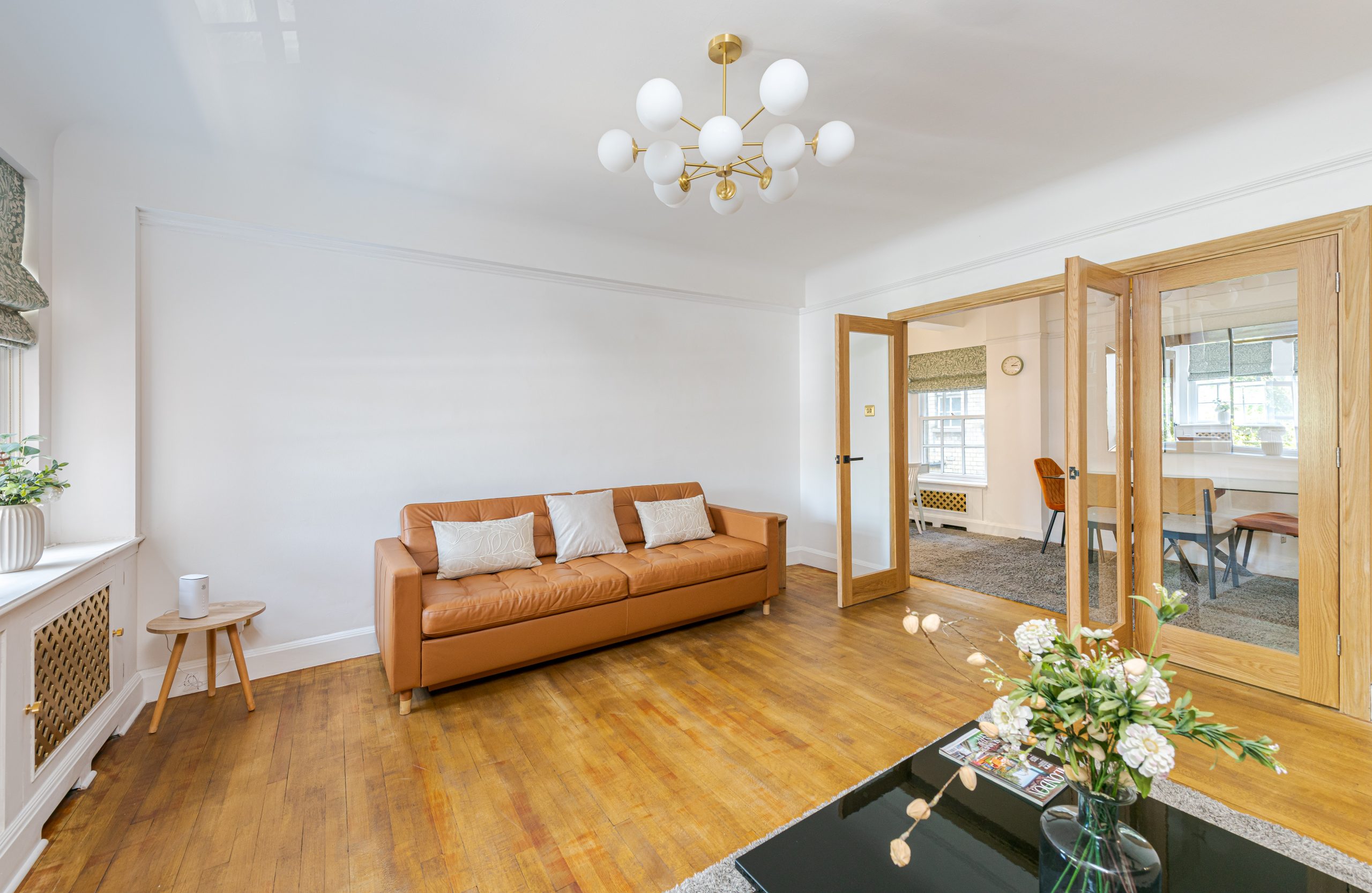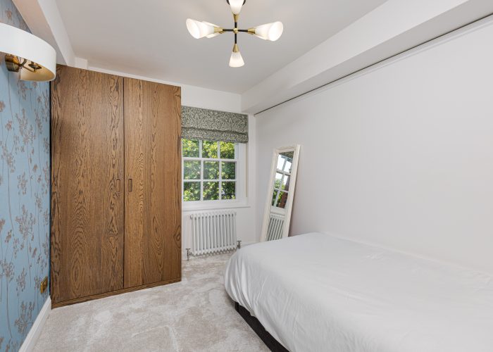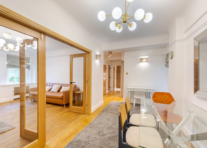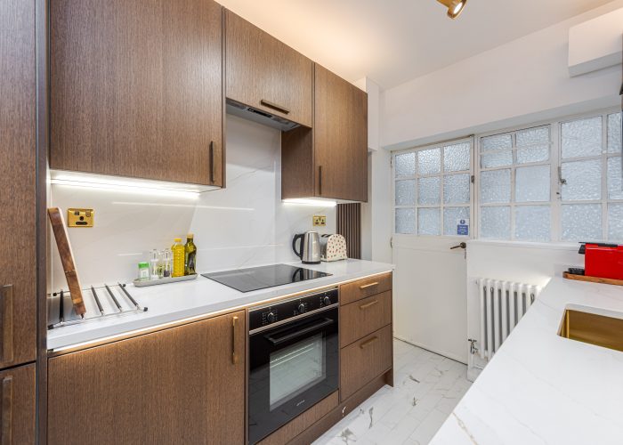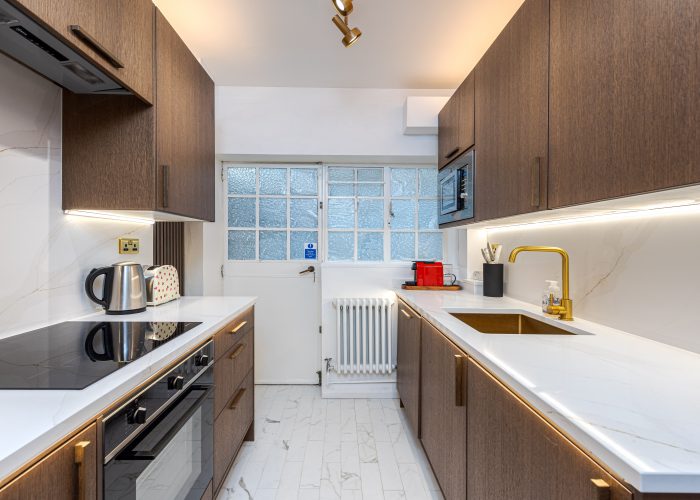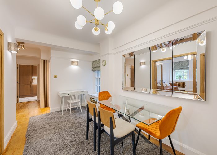 In perfect condition throughout, the flat has been cleverly designed to make the most of the living space. There is a generous hallway, which can be used as a dining area, a good-sized reception room and a fully-fitted kitchen. The master bedroom is a good size and has built-in storage and the second bedroom also has built-in storage. They are served by an immaculate shower room.