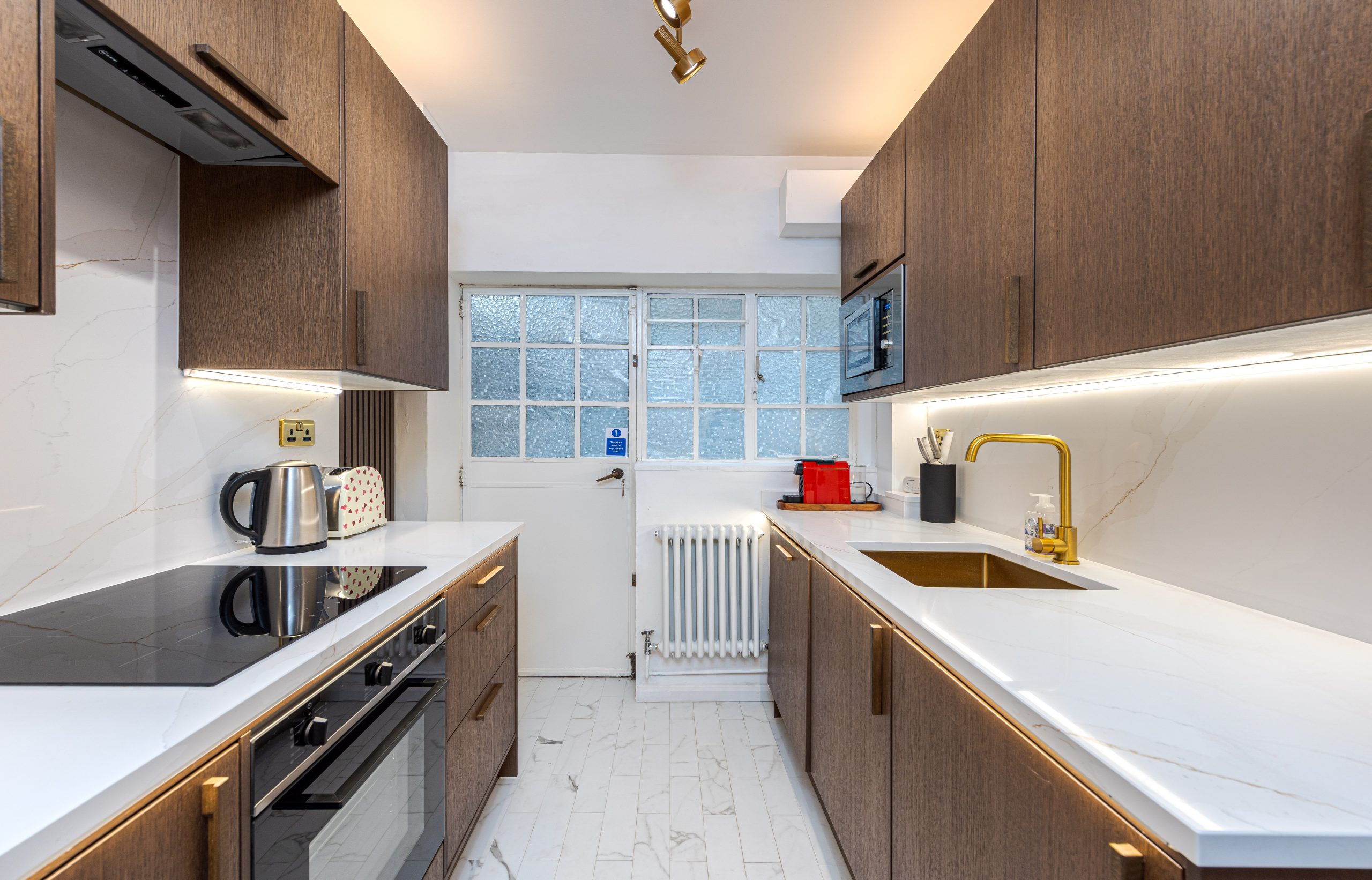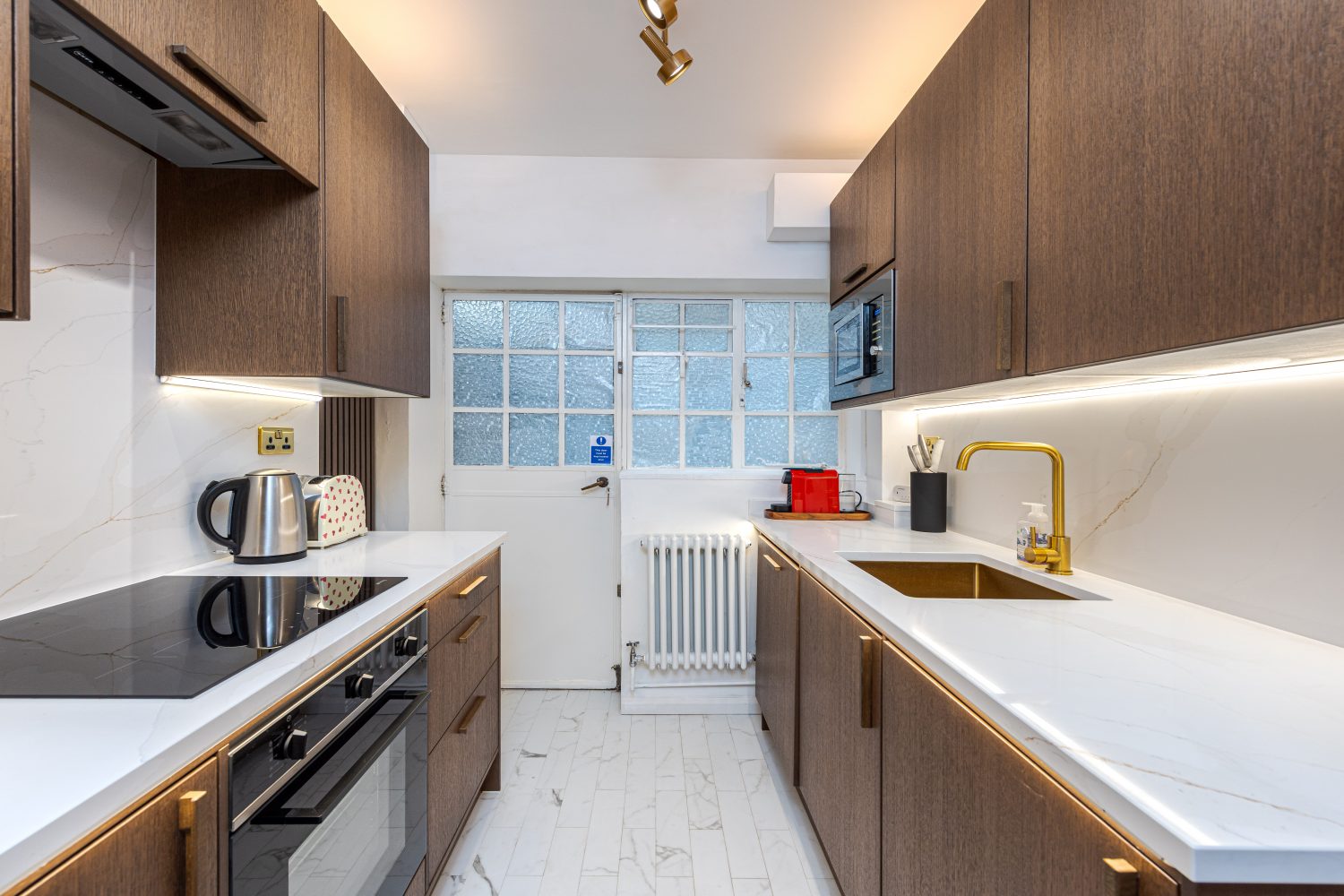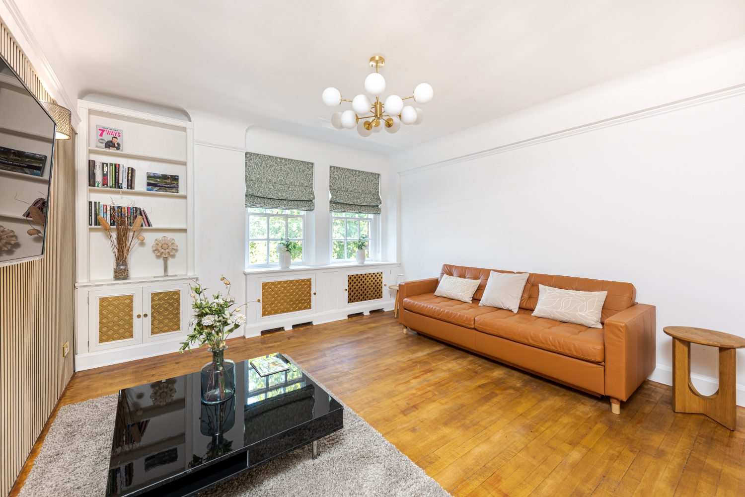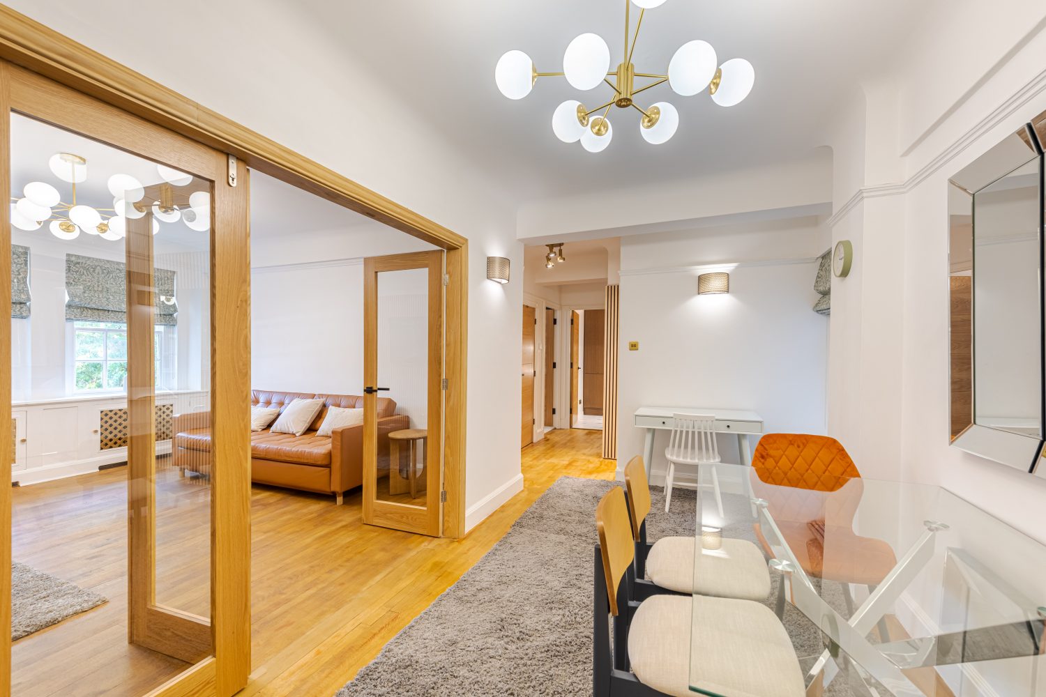 In perfect condition throughout, the flat has been cleverly designed to make the most of the living space. There is a generous hallway, which can be used as a dining area, a good-sized reception room and a fully-fitted kitchen. The master bedroom is a good size and has built-in storage and the second bedroom also has built-in storage. They are served by an immaculate shower room.