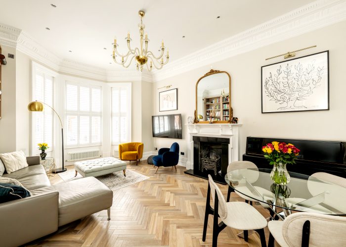 A charming end-of-terrace apartment in the heart of South Kensington boasting three bedrooms, two receptions and a spacious garden. Offered either part or unfurnished with residents parking, this period property offers 1,698 sq ft of living space.