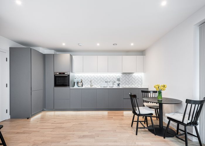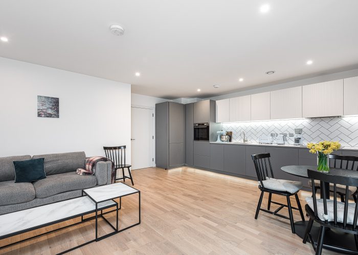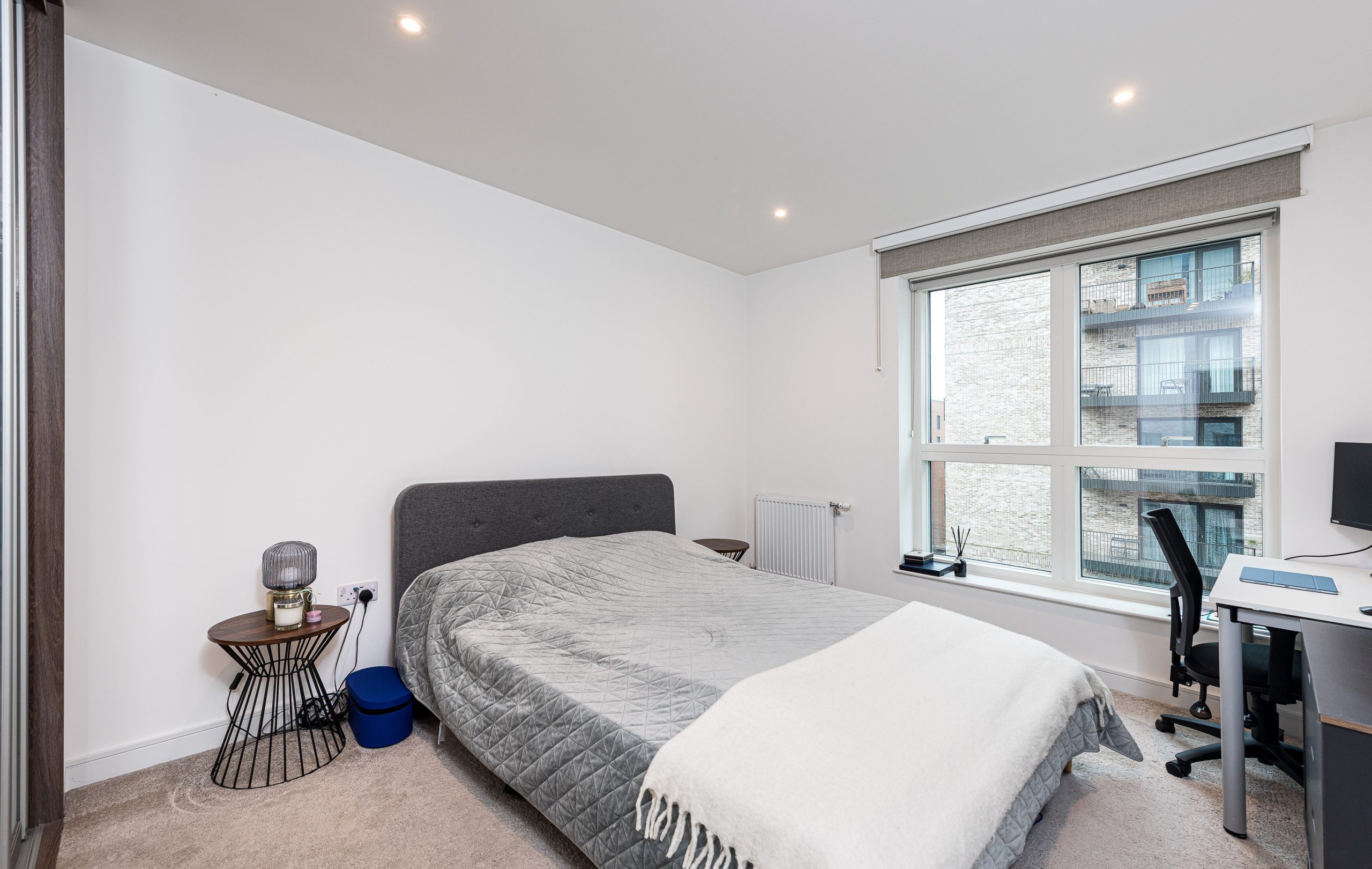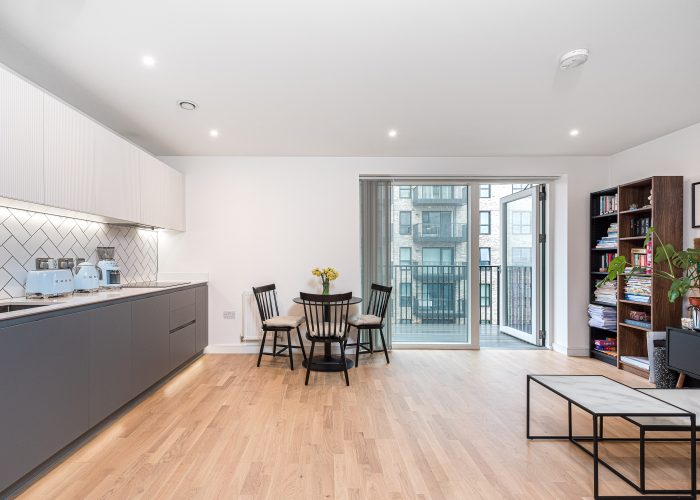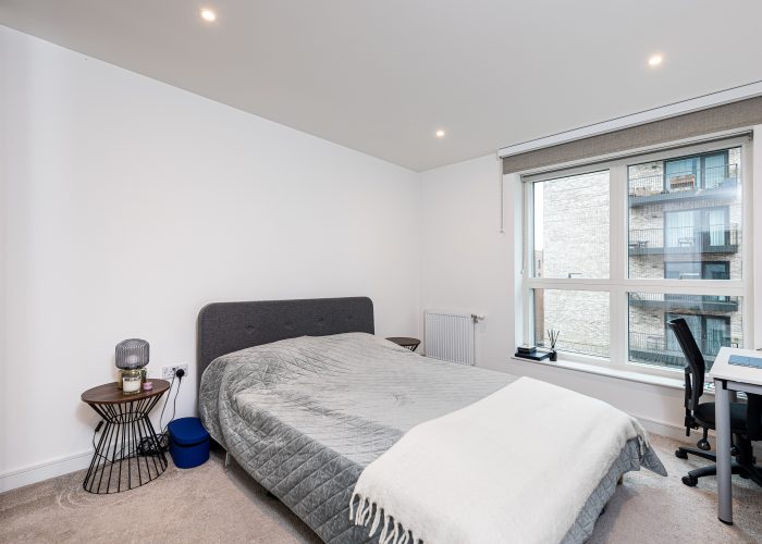 This naturally bright apartment has a good-sized open-plan kitchen/reception room with space for a dining table and access to the private balcony, with modern appliances. There is a double bedroom with built-in storage served by a contemporary bathroom. The development has 24 hr concierge and provides modern facilities including a swimming pool, gym, co-working lounge, and cycle storage.