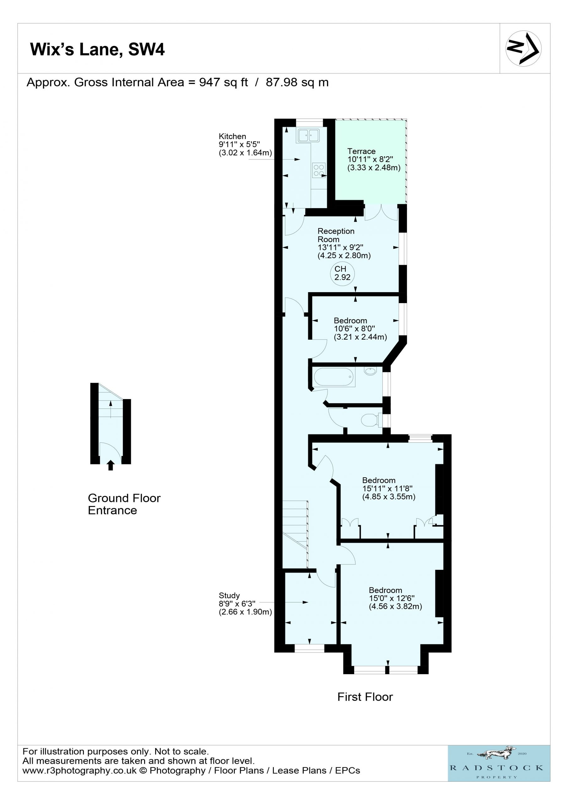 A three bedroom maisonette with its own front door, a roof terrace and potential to extend subject to the necessary planning consents.