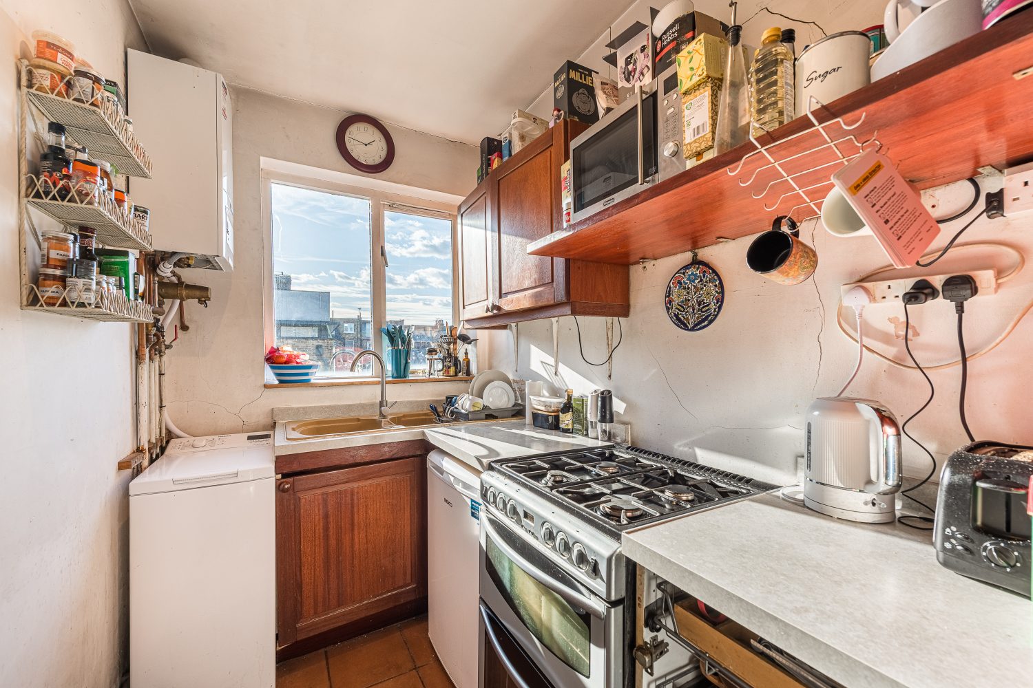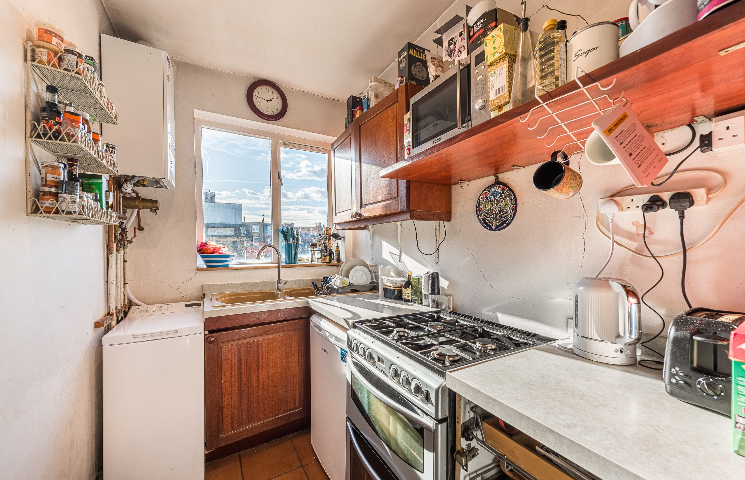 The flat is naturally bright throughout and has three double bedrooms served by a family bathroom and a small fourth bedroom/study. There is a reception room which has access onto a west facing roof terrace and a galley kitchen. There is great scope to update the property and also extend into the loft (subject to the necessary planning consents).