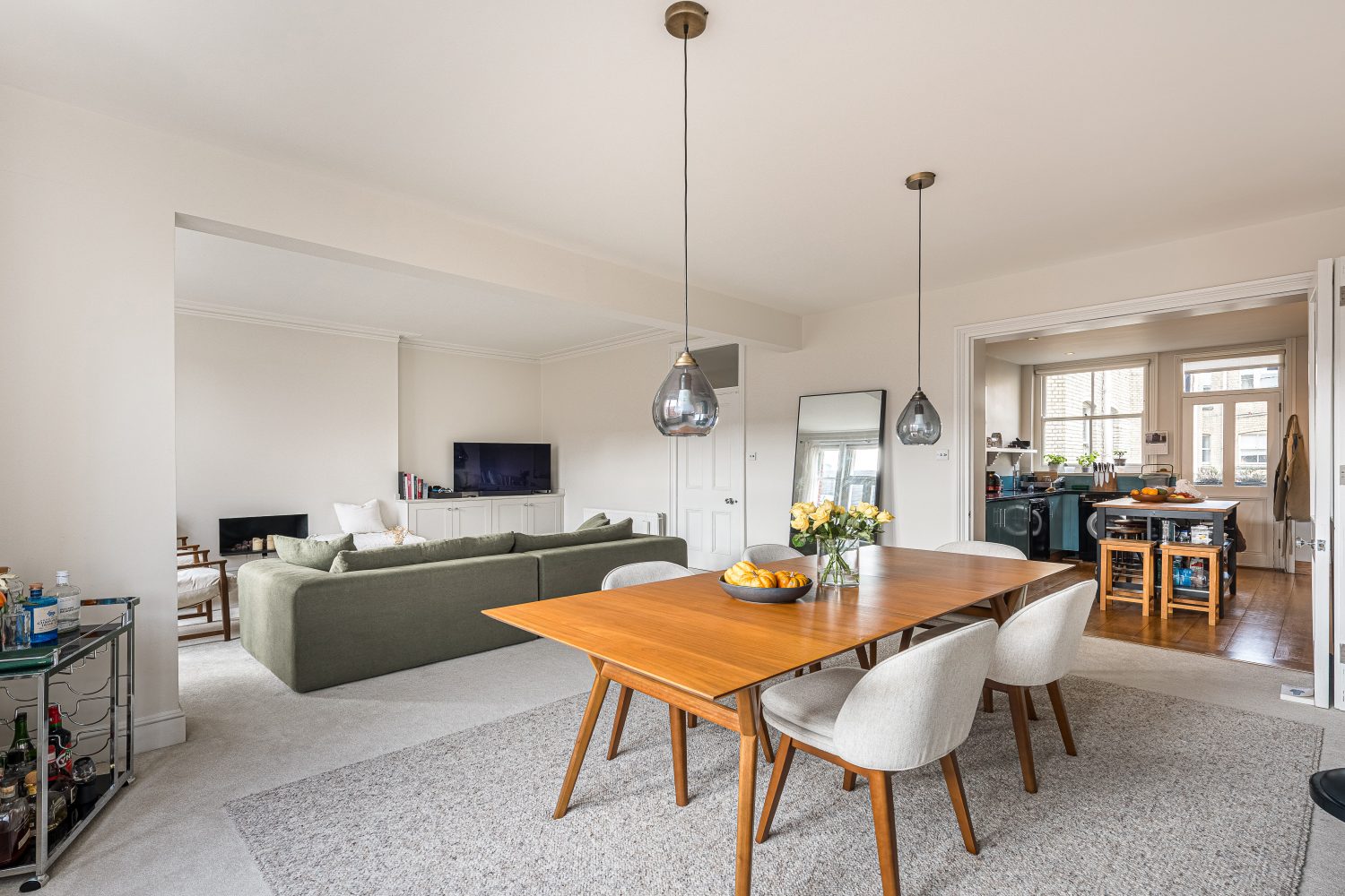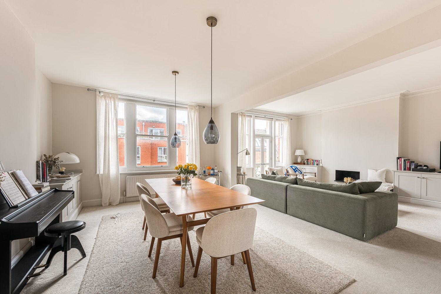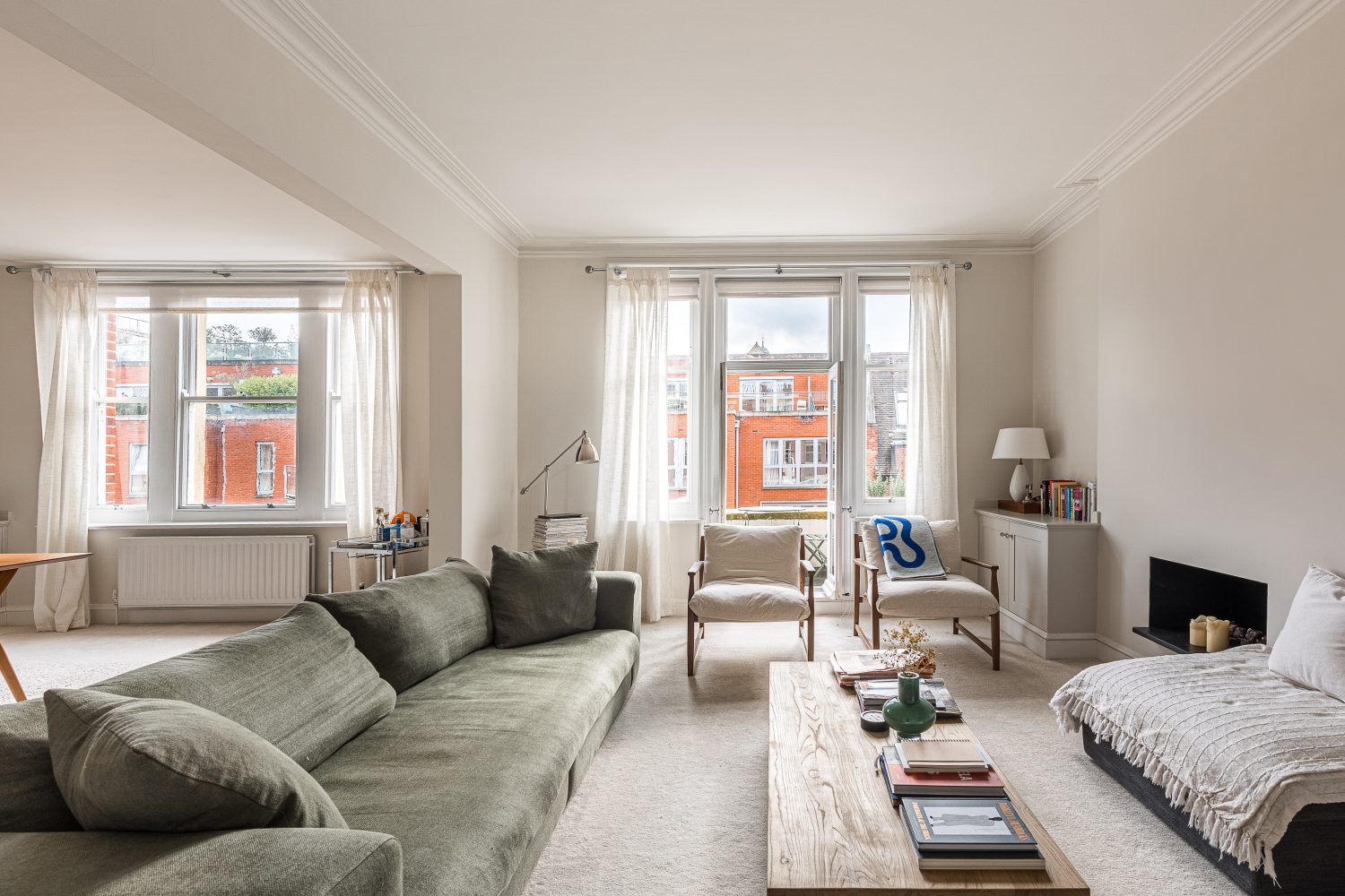 A naturally bright three bedroom flat on the third floor (lift) of York Mansions, SW11.The flat has a wonderful south-facing double reception room, providing superb entertaining space, leading to a well-appointed kitchen. There are three double bedroom served by a bathroom and a shower room.