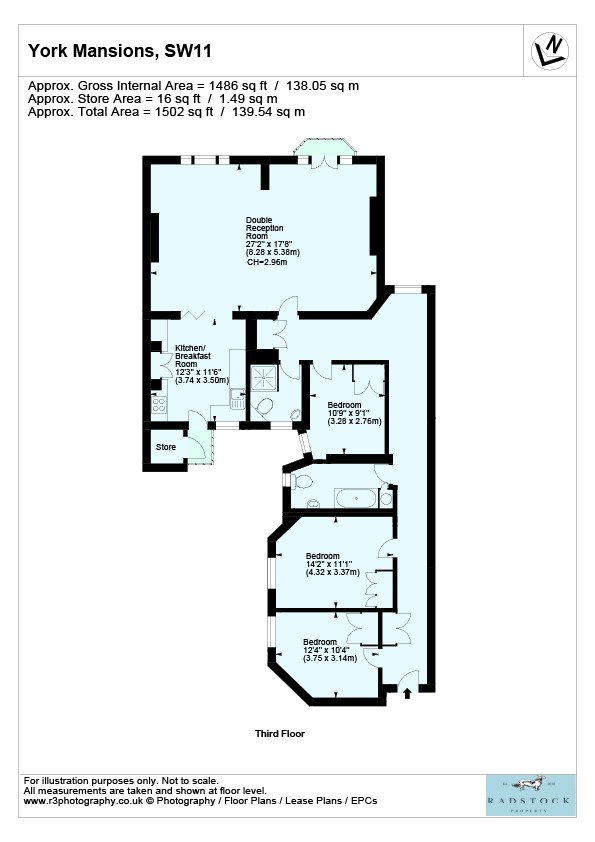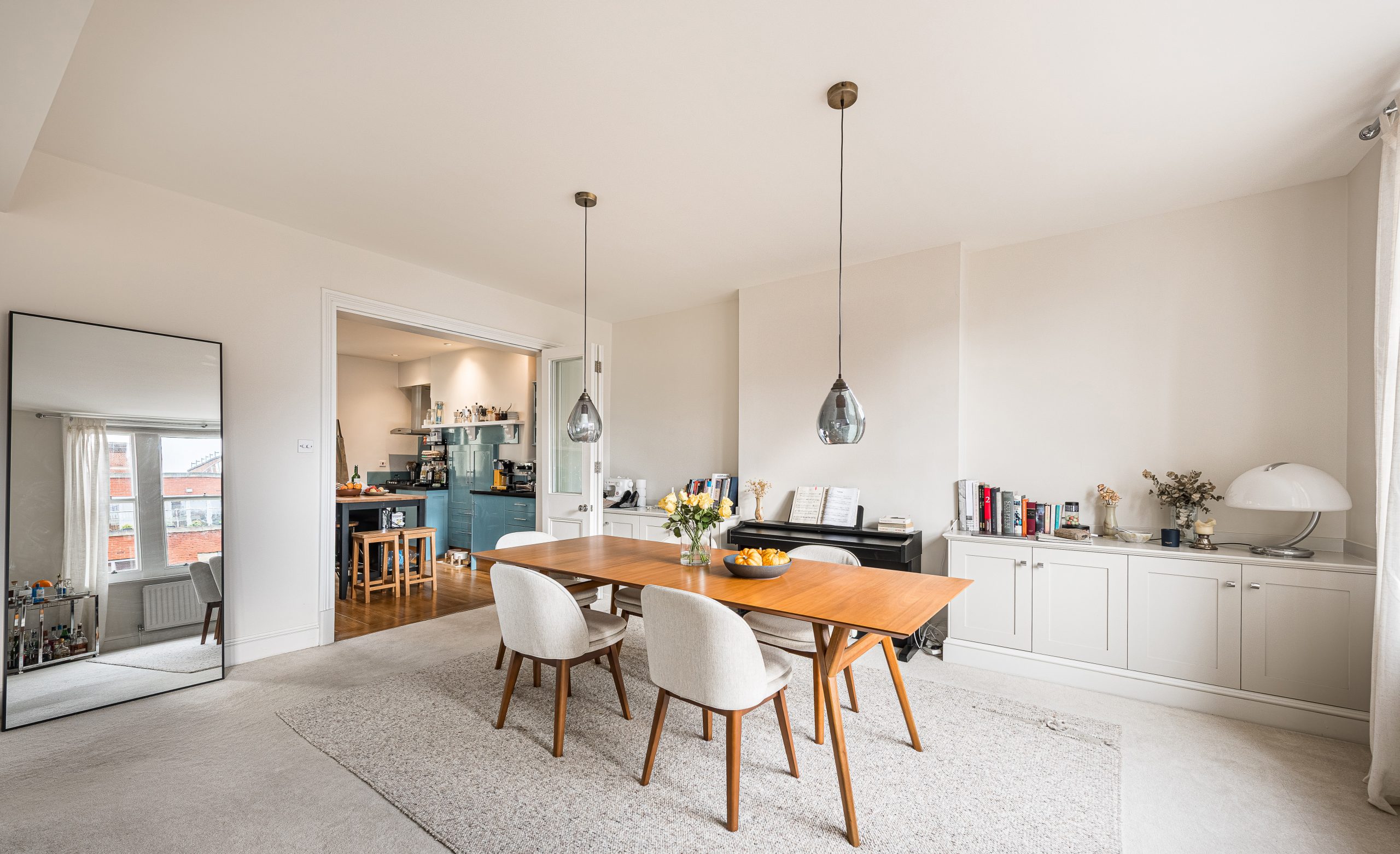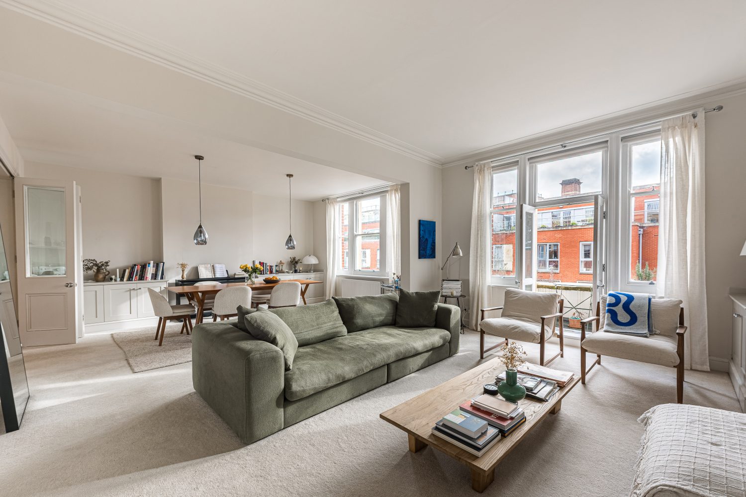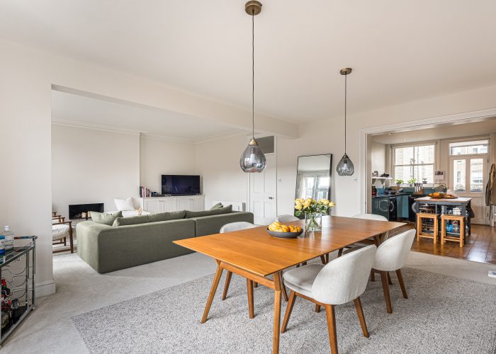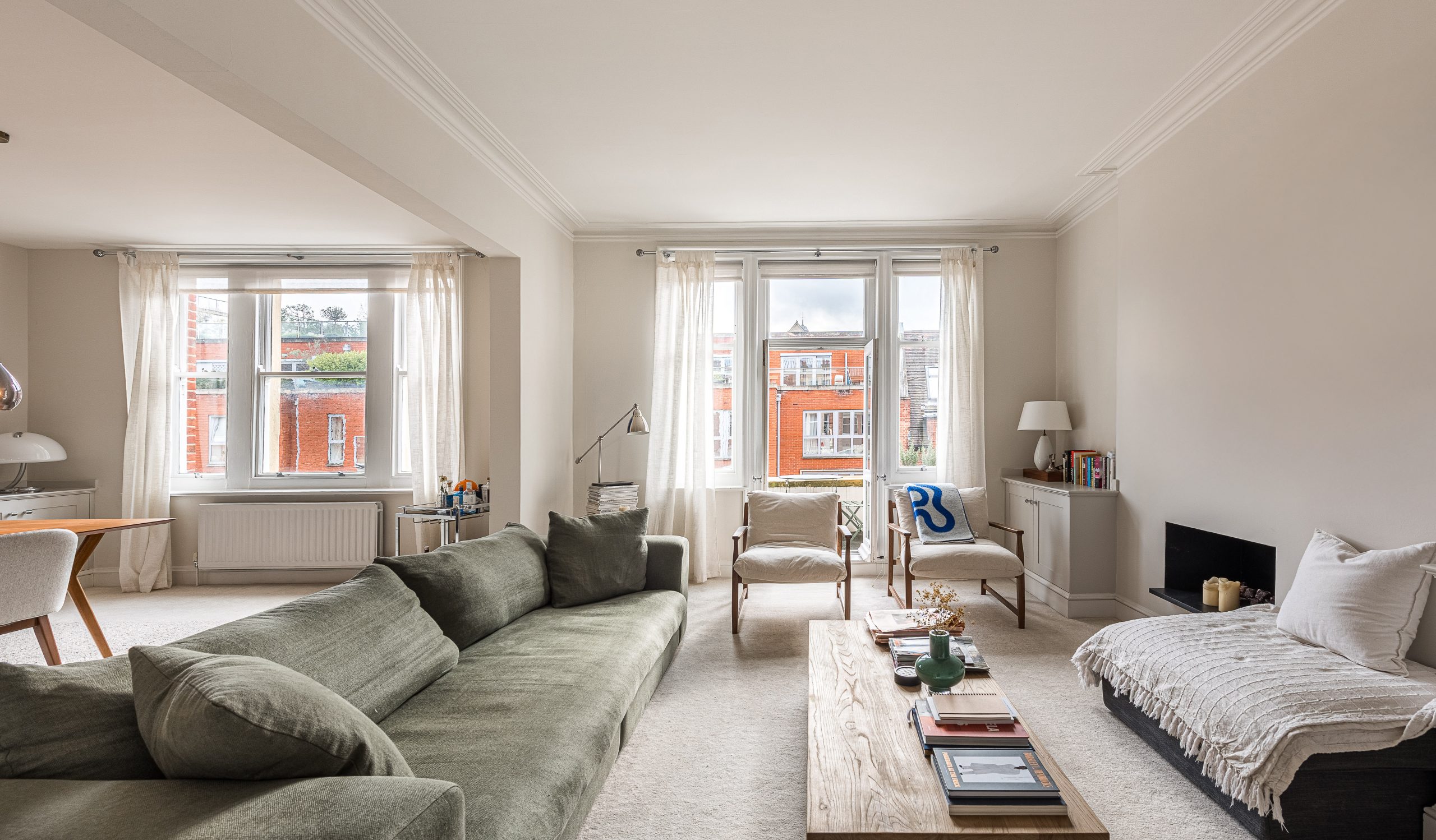 A naturally bright three bedroom flat on the third floor (lift) of York Mansions, SW11.The flat has a wonderful south-facing double reception room, providing superb entertaining space, leading to a well-appointed kitchen. There are three double bedroom served by a bathroom and a shower room.